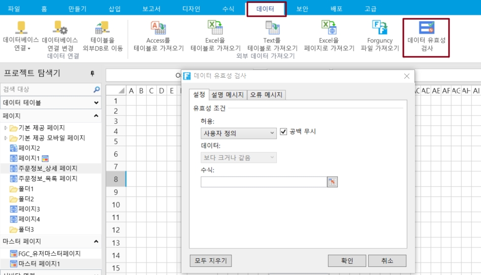 포건시의 데이터 유효성 검사에서 사용자 지정 유효성 검사는 수식 검사를 사용하여 데이터 입력을 표준화합니다.