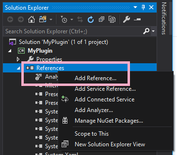 3. 다시 솔루션 탐색기의 “참조”에서 마우스 오른쪽 클릭하여 “참조 추가(Add Reference)”를 선택하십시오.