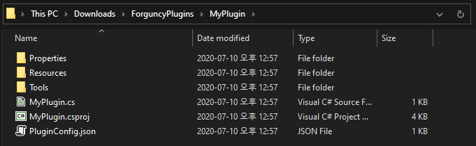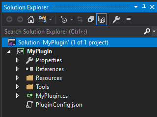 1. 플러그인 개발 환경을 생성하신 위치에서 .csproj 파일을 더블 클릭하시면 Visual Studio에서 프로젝트가 열립니다.