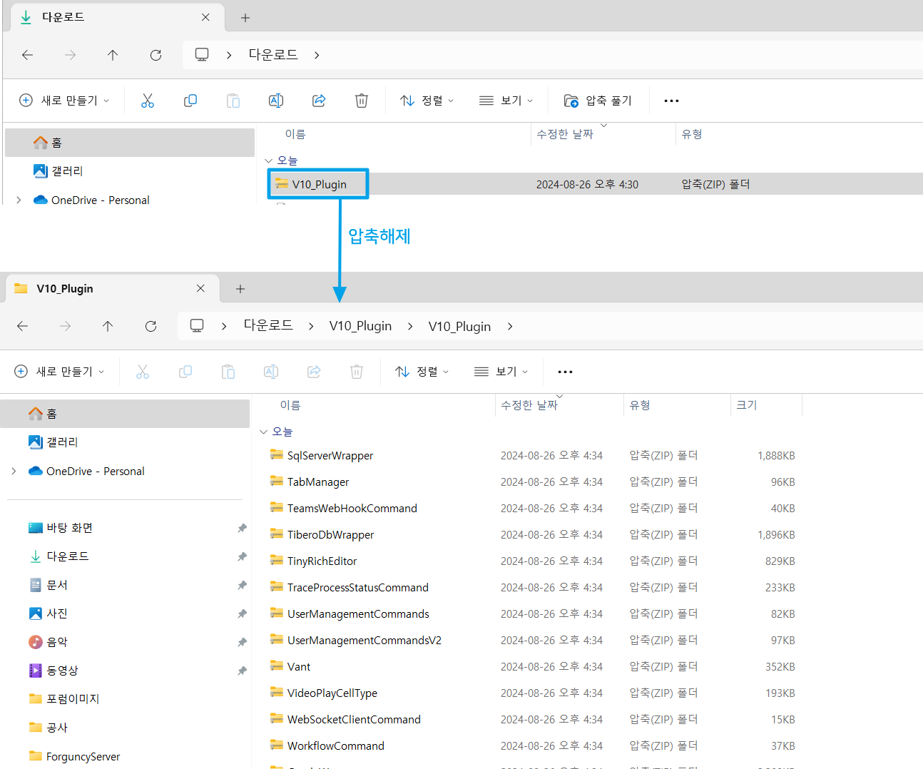 2. 다운로드 받은 플러그인.zip파일의 압축을 풉니다.<br>