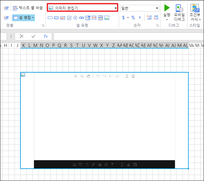 3\. 셀 영역을 선택하고, 셀 유형 "그림 슬라이드"로 설정합니다.
