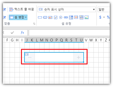 셀영역을 지정한 후, 상단 셀 유형에서 엘리먼트 UI에서 "숫자표시상자"를 선택합니다.