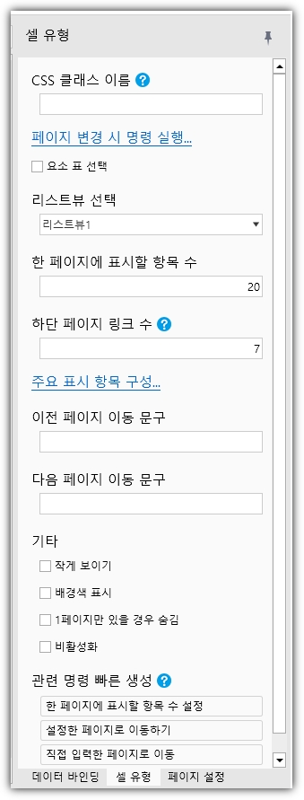 페이지 매김의 대상 리스트뷰를 선택하십시오. 페이지가 여러 개인 경우 동일한 목록 보기를 선택합니다. 페이지 수, 페이지 색인과 같은 설정은 동기화됩니다.