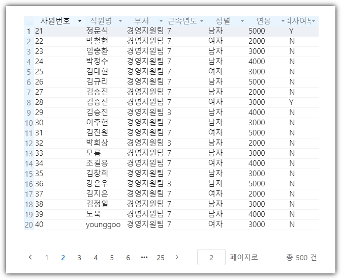 사용자가 런타임에서 한 페이지 행 수를 변경할 수 있습니다.