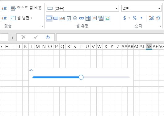 셀 범위를 선택하고 슬라이더 셀유형을 선택합니다.