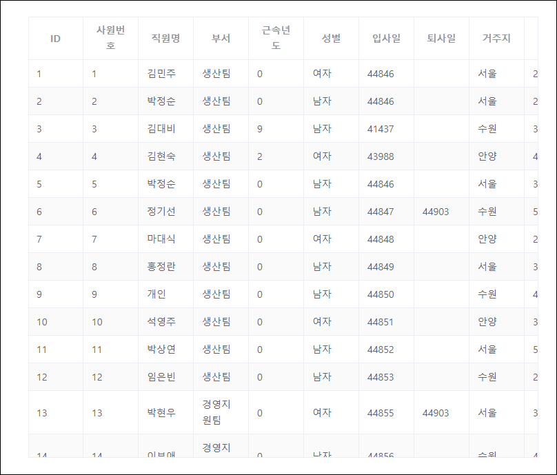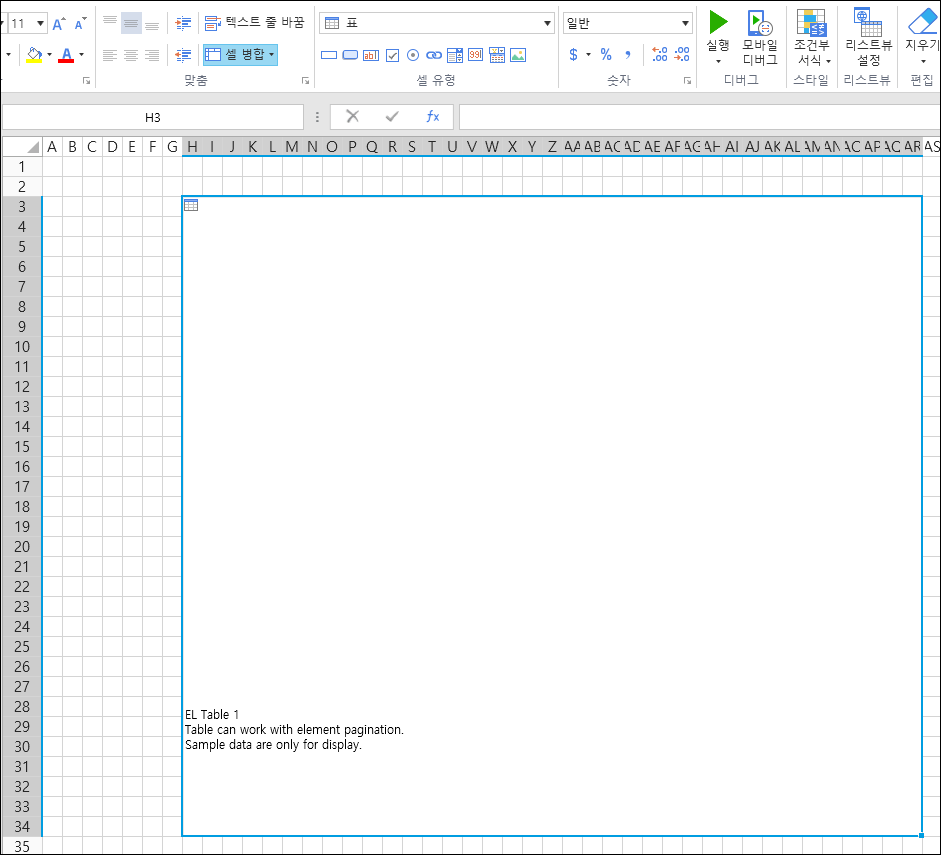 데이터를 표에 표현할 수 있는 셀타입입니다.  데이터테이블을 연결하여 사용할 수 있습니다.&#x20;