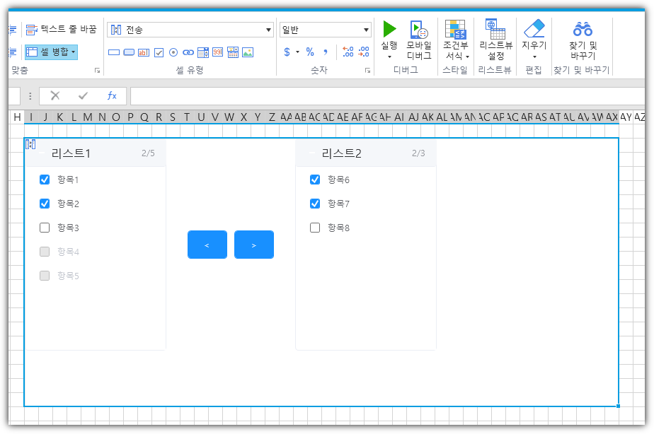 | 항목 구성     | 디자인 타임에 바인딩 해제 항목 구성                                                                                                                                                                                                                           |