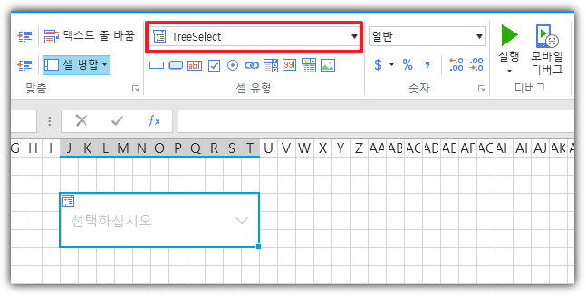 TreeSelect는 트리구조의 항목을 선택하여 사용할 수 있는 셀타입입니다.
