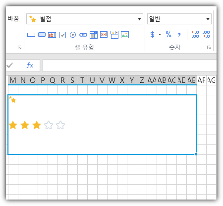 별점 셀유형을 사용하여 별점을 매길 수 있습니다.&#x20;