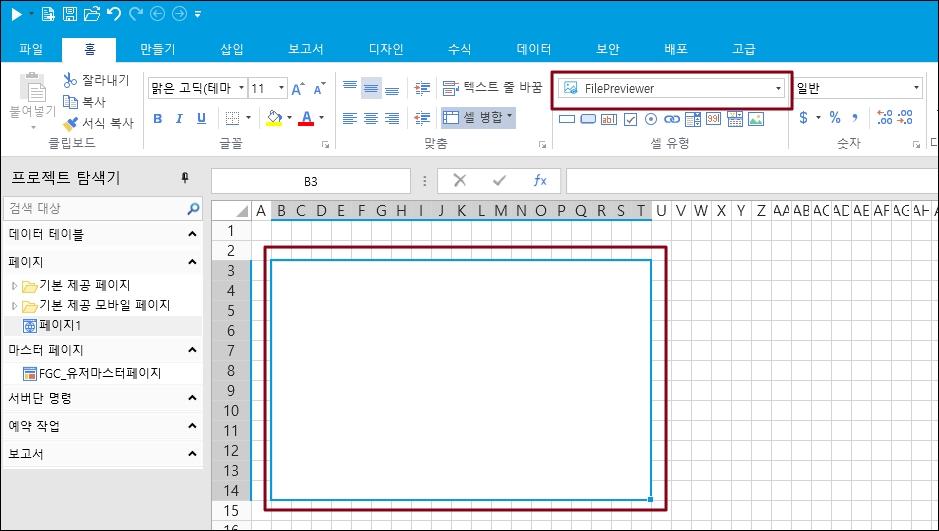 셀 영역을 선택하고, 셀 유형 "FilePreviewer"로 설정합니다.