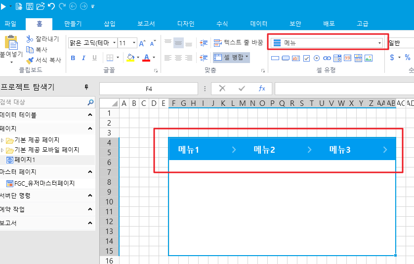 4. 속성 설정 영역의 "셀 설정" 탭에서 메뉴를 설정하며, 설정 설명은 표 1을 참조한다.