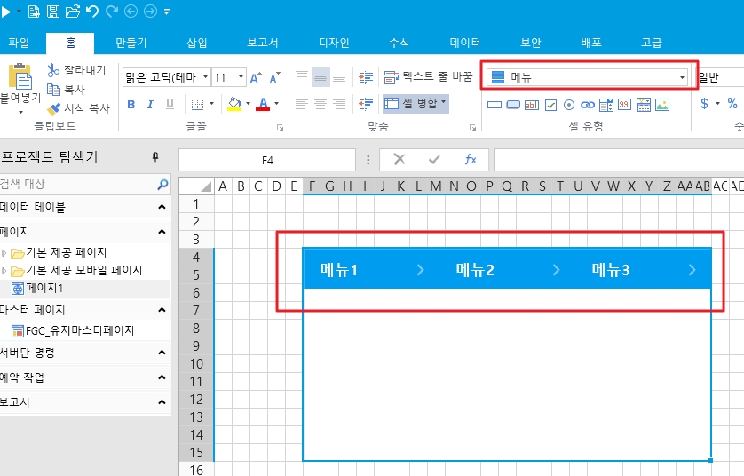 셀 범위를 선택하고 해당 셀 유형을 메뉴로 설정합니다.