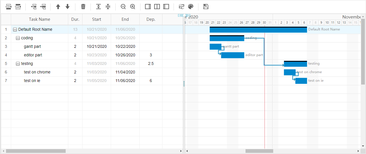 ### 간트차트 툴바 설명