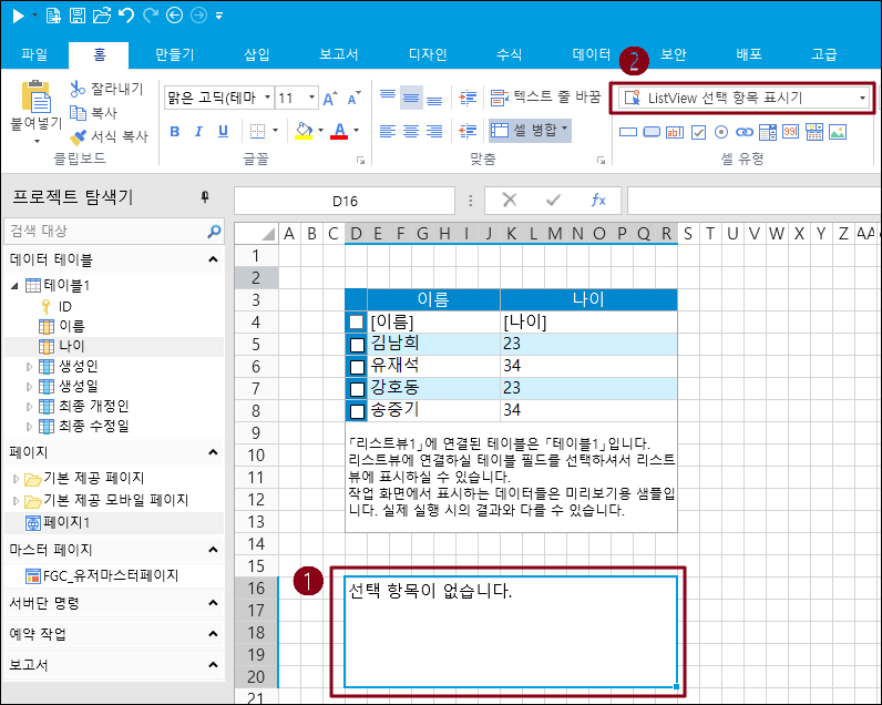 3. 페이지에 리스트뷰를 추가합니다.