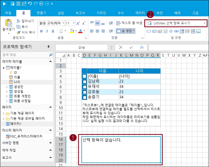 4. 셀 범위를 선택하고 해당 셀 유형을 ListView 선택 항목 표시기로 설정합니다.