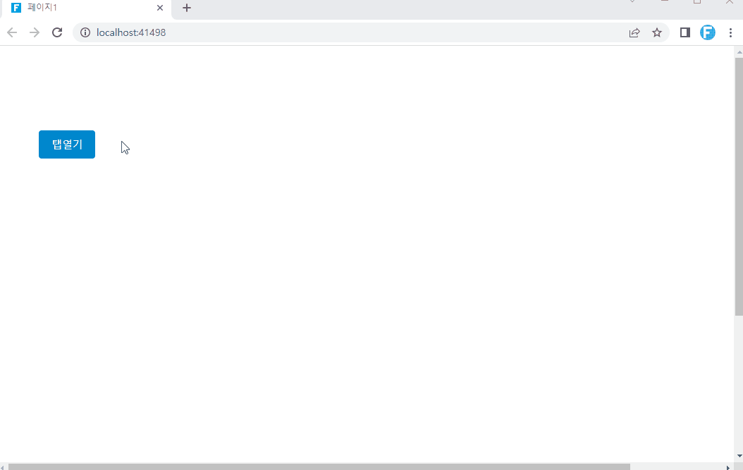 5\. 실행을 하면 "탭열기"버튼을 클릭하면 페이지2가 탭에서 나오는 것을 확인할 수 있습니다. &#x20;