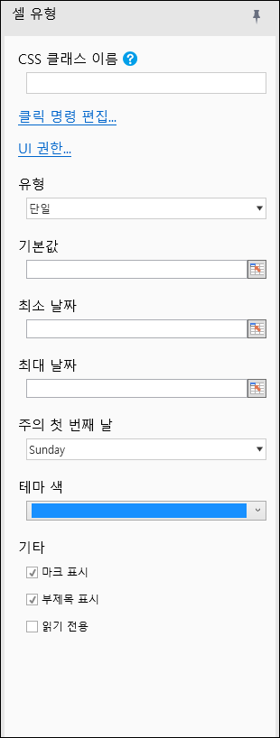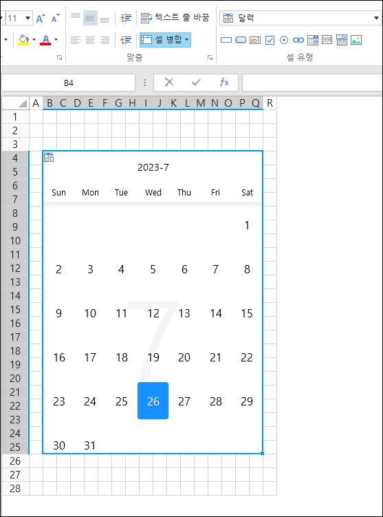 단일 유형에서 calendar의 셀 값은 날짜 문자열 또는 OADate 숫자일 수 있습니다.