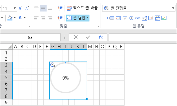 원 진행률 셀타입을 이용하여 원으로 진행율을 표시할 수 있습니다.&#x20;