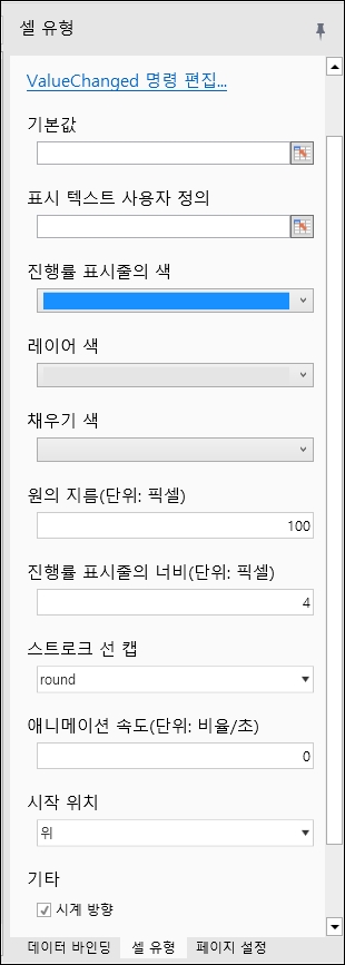 진행 색상 변경, 진행 텍스트, 채우기 색상