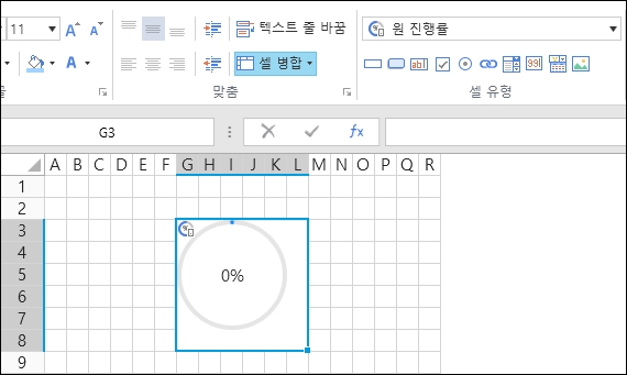 원 진행률 셀타입을 이용하여 원으로 진행율을 표시할 수 있습니다.