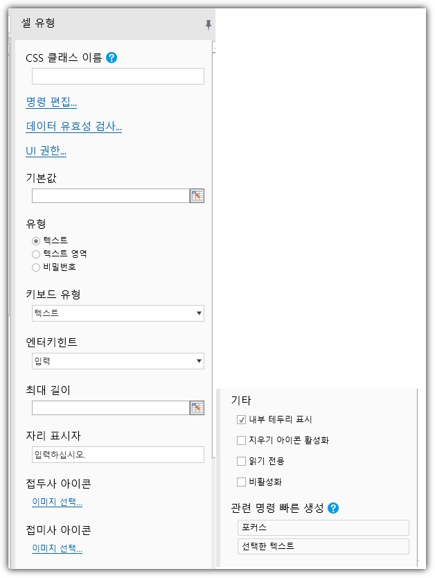 셀의 구성 데이터 유효성 검사, 업데이트 명령 실행 또는 요청 서버 명령 실행 시에만 유효성 검사