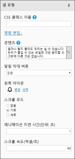 스크롤 속도(px/s), 가로 모드 에서 작동