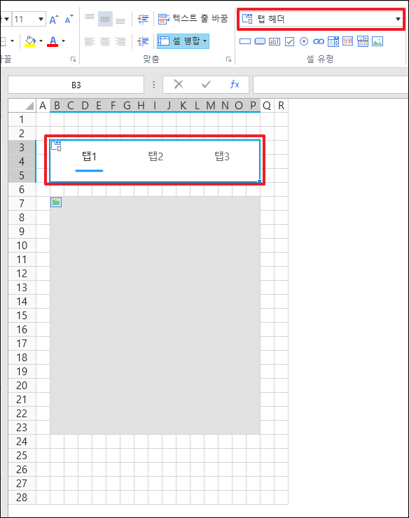 1. 텝 헤더 셀을 추가합니다.