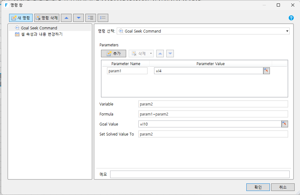 > 목표값찾기 기능은 서버단 명령에서 사용이 불가능합니다.