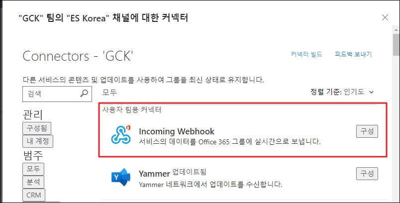 MS 팀즈에 메세지 전송 (TeamsWebHookCommand)