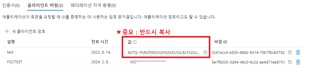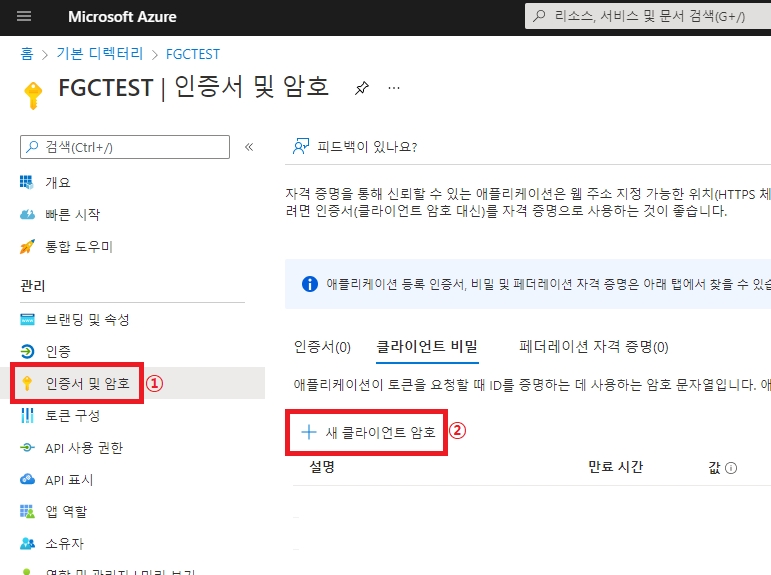 7. Certificate & secrets을 선택하여 Client Secret을 가져옵니다.