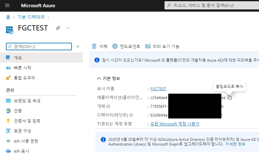 (2) 디렉터리(테넌트) ID - Directory(Tenant)ID