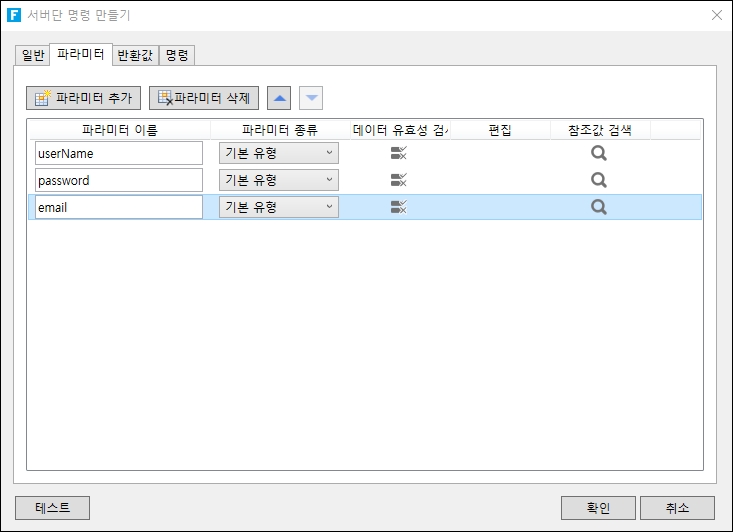 b. 파라미터 : 필수 파라미터 설정 (기존 사용자 페이지와 연동 필요 )