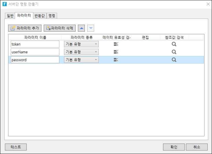 b. 파라미터 : 토큰, userName 및 암호(userName 및 암호는 신원 확인에 사용됨)