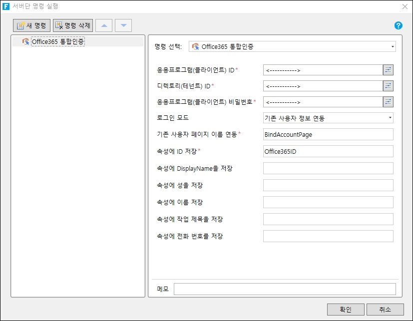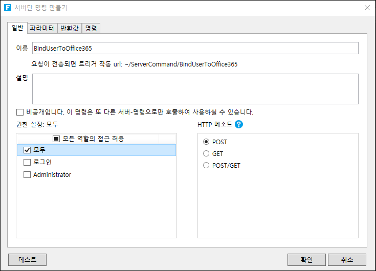 사용자를 Office 365 서버에 바인딩 명령 호출