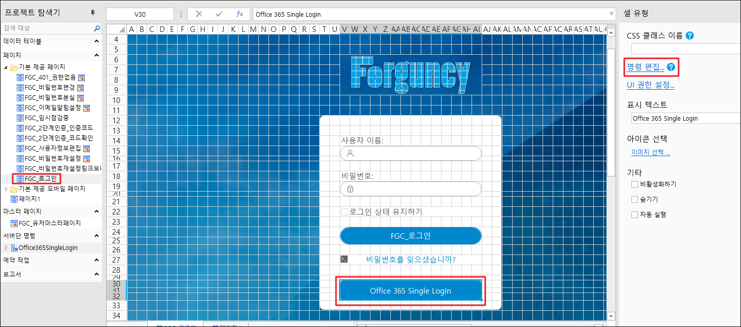 3. 아래와 같이 버튼을 만들고 "명령 편집"을 클릭합니다.