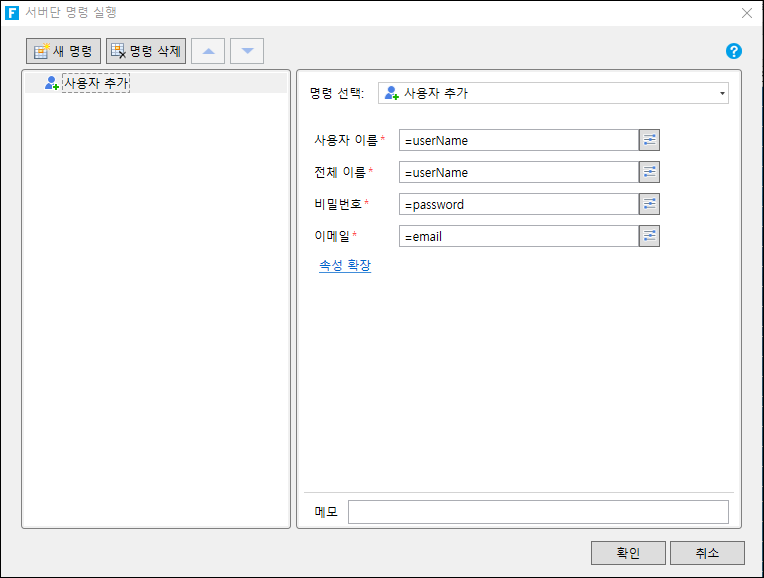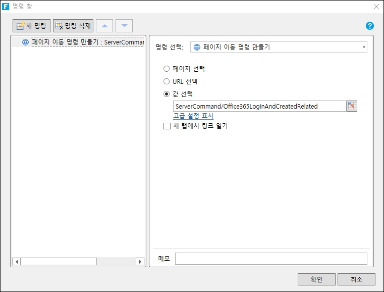 - 값 선택 : 1 번에서 생성한 명령 값을 넣어줍니다.