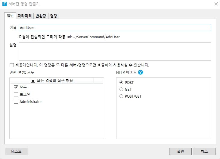 6-2. 사용자 등록 및 바인딩이 필요한 경우 사용자 추가 서버단 명령을 설정해야 합니다.
