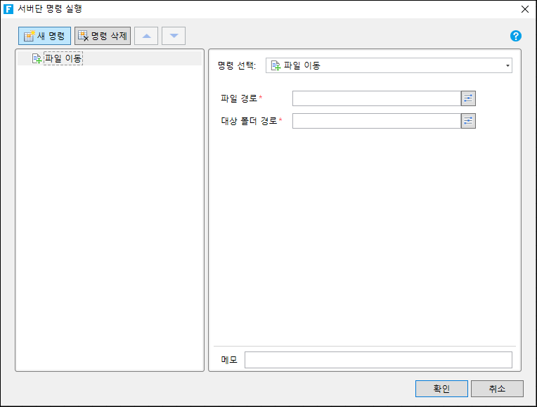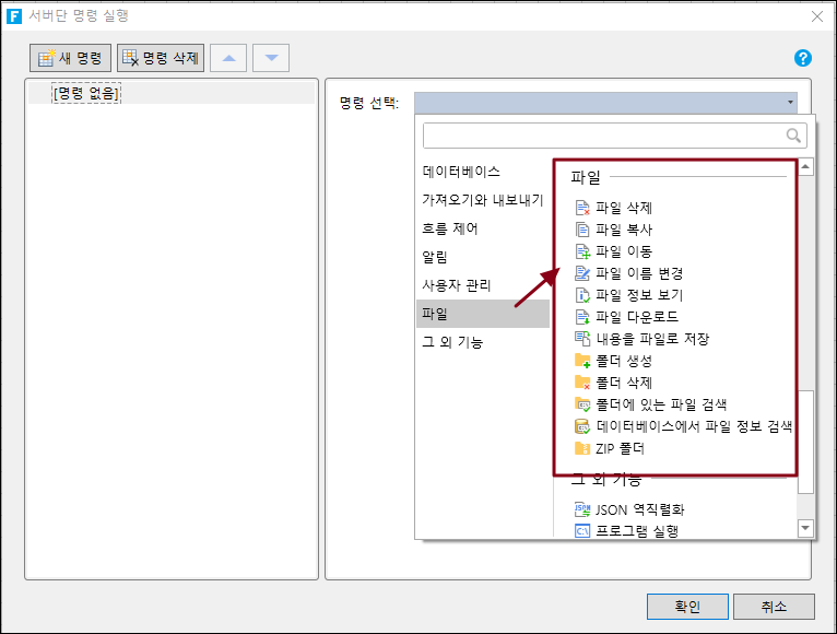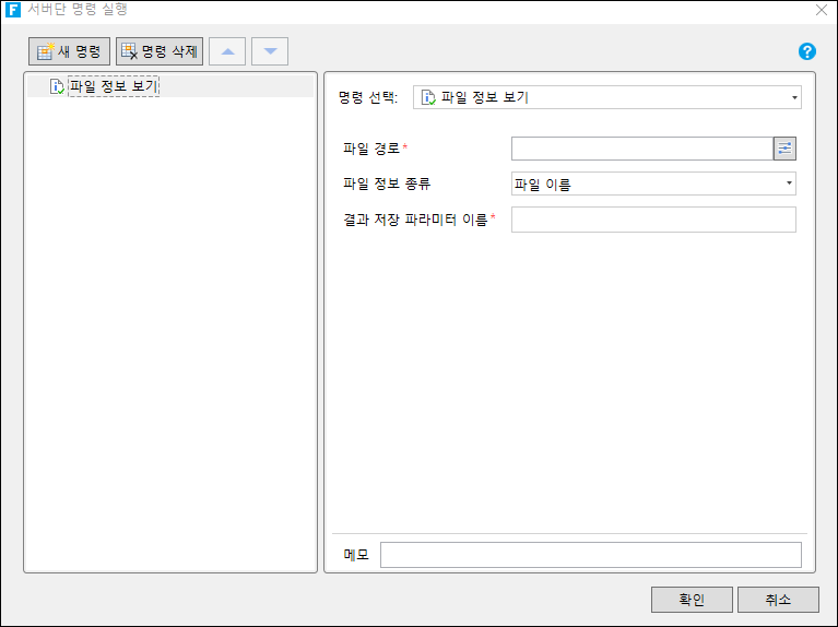 서버단 명령실행에서는 파일의 삭제, 복사 및 파일 정보를 취득할 수 있습니다.&#x20;