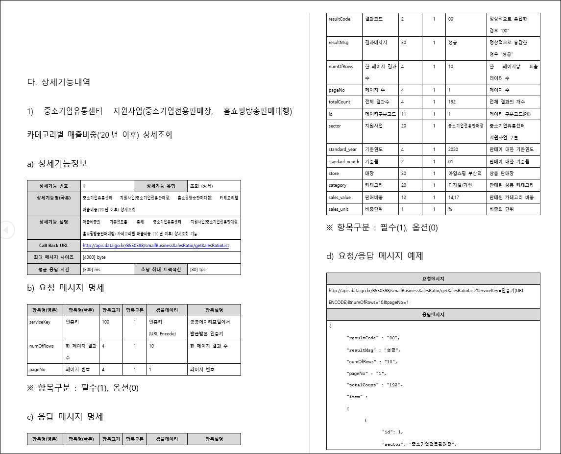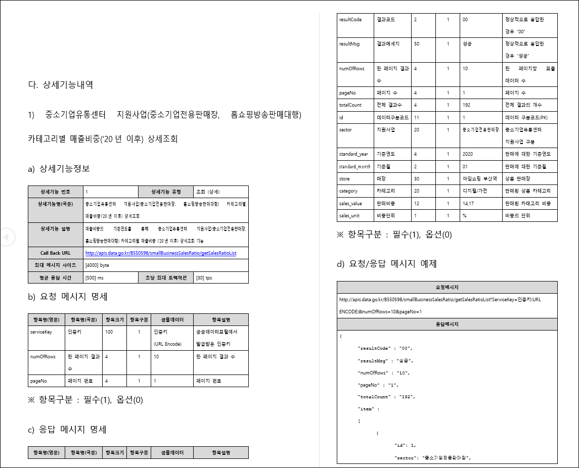 일반적으로 타사에서 데이터 연결을 위한 API 문서를 아래와 같이 제공합니다.