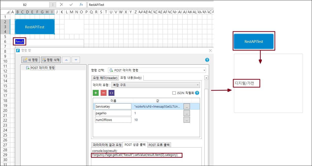 4. 요청 결과를 셀 값으로 설정 할 수 있습니다.