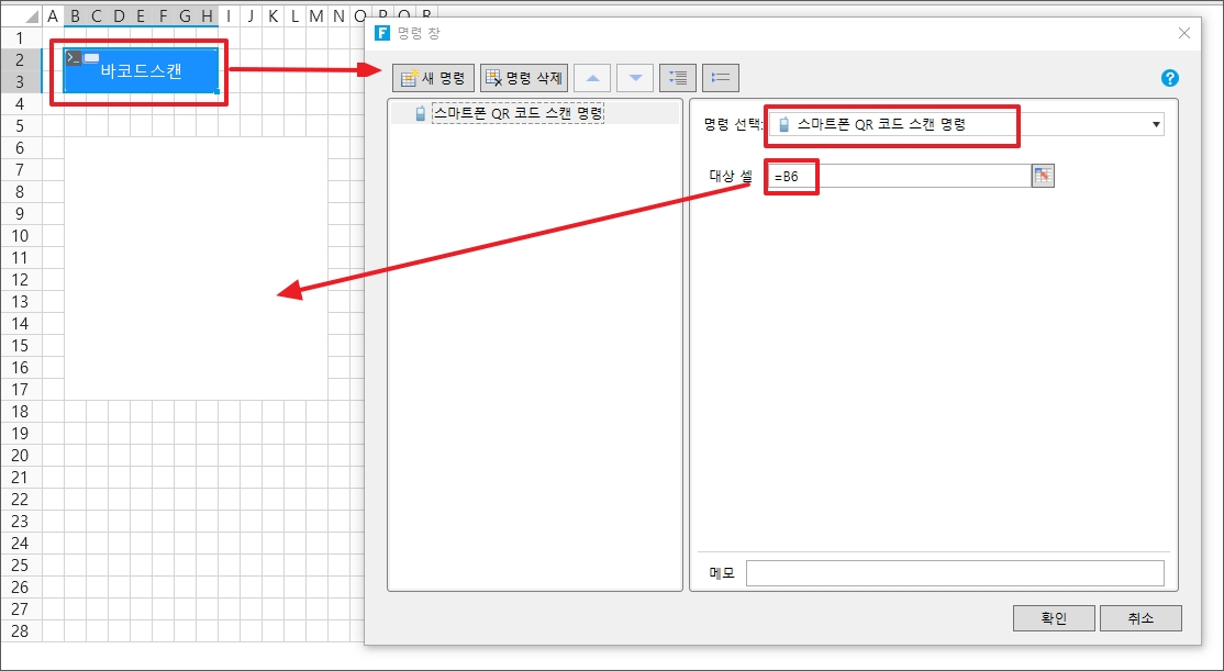 명령 선택: 스마트폰 QR코드 스캔 명령
