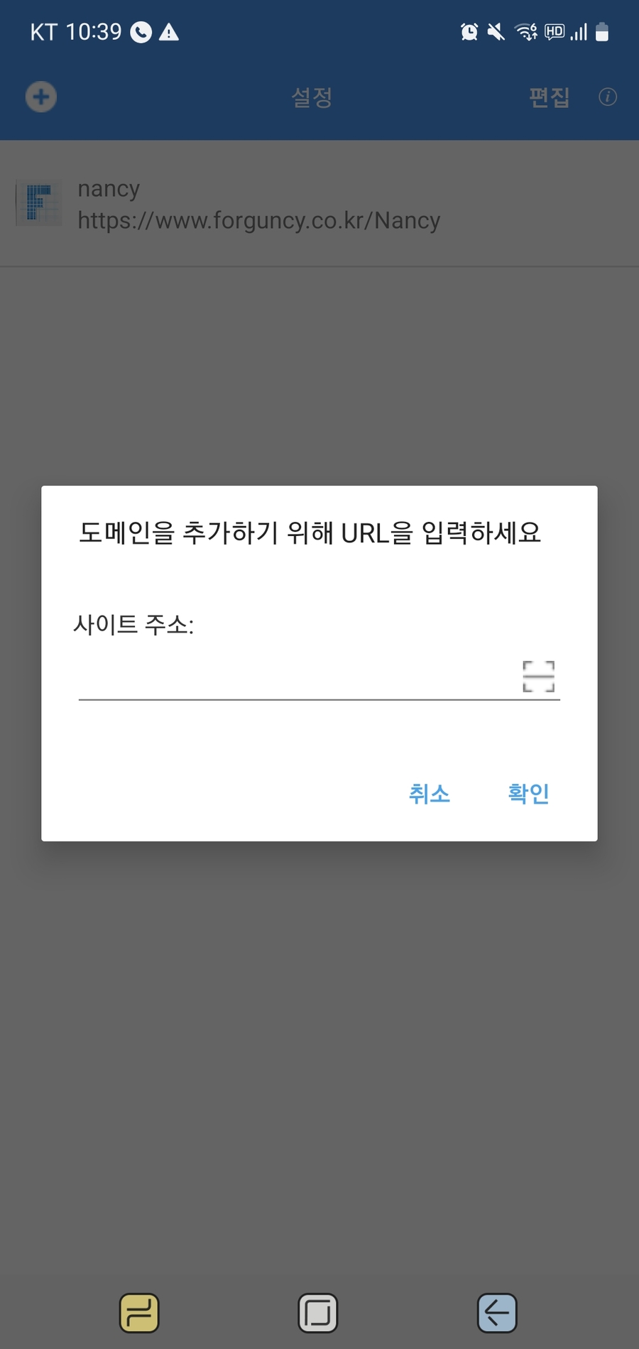 "+" 버튼을 클릭하여 배포한 사이트 주소를 적습니다.