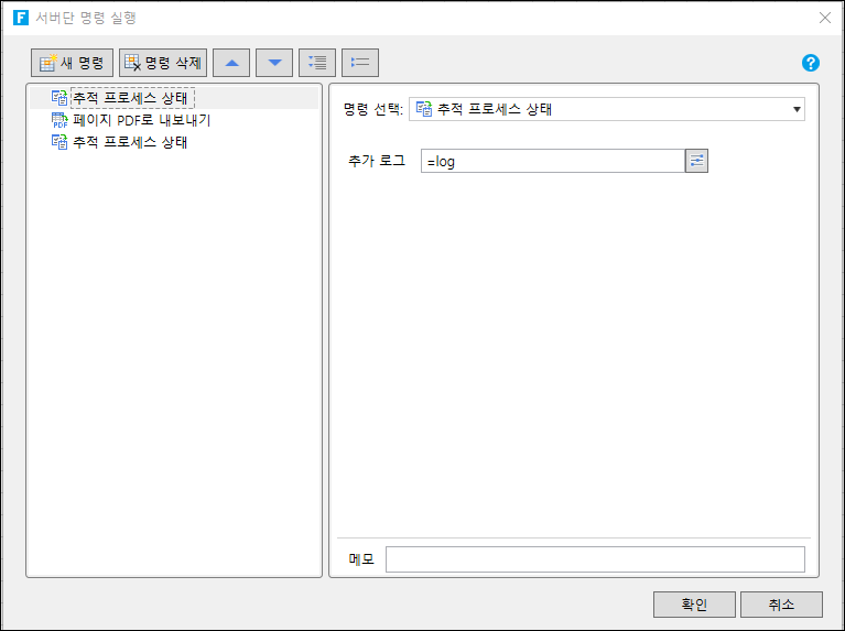 시스템 성능에 영향을 미칠 수 있는 명령 사이에 추적 프로세스 상태 명령을 추가합니다.  첫번째로그는   "페이지 PDF로 내보내기"  명령을 실행 하기 전의 로그이고, 마지막 로그는 "페이지 PDF로 내보내기"  명령을 실행 하기 후의 로그입니다.