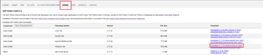 1. Hana 클라이언트 설치 프로그램을 다운로드 합니다. SAP Hana 사용자가 아닌 경우, 설치만 가능합니다.&#x20;