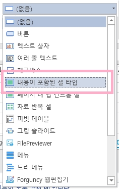 ※ 참고 : “내용이 포함된 셀 타입”이라는 셀 유형은 아래와 같은 위치에 있습니다.