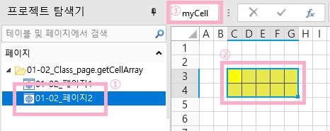 (2) 이후 영역이 선택된 상태에서 좌측 상단에 “myCell”이라고 붙여 줍니다.※ 참고 : ForguncyCell Name과 관련한 사항에 대해서는 별도의 페이지에서 설명합니다.