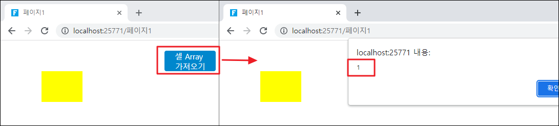 페이지를 실행하고 페이지에서 단추를 클릭하면 반환된 셀 인스턴스의 길이를 보여 주는 경고 상자가 나타납니다.