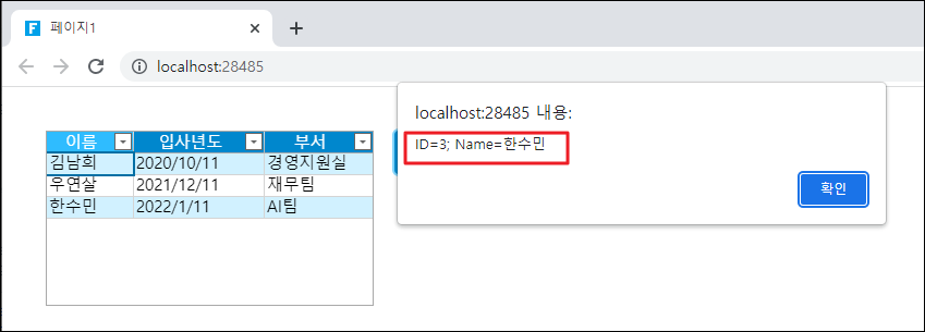 페이지를 실행하고 데이터 가져오기 버튼을 클릭하면 가져온 데이터를 표시하는 경고 상자가 나타납니다.