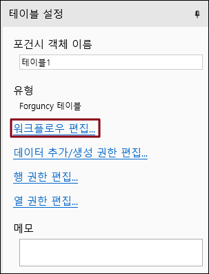 1. 데이터 테이블을 열고 테이블 설정에서 \[워크플로우 편집]을 클릭하여 워크플로우 설정 인터페이스로 이동합니다.&#x20;