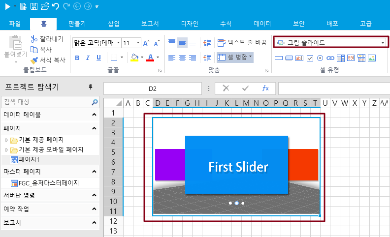3\. 셀 영역을 선택하고, 셀 유형 "그림 슬라이드"로 설정합니다.